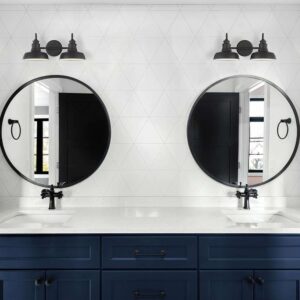 Elmcroft 18.25 in. 2-Light Matte Black Vanity Light with Metal Shades